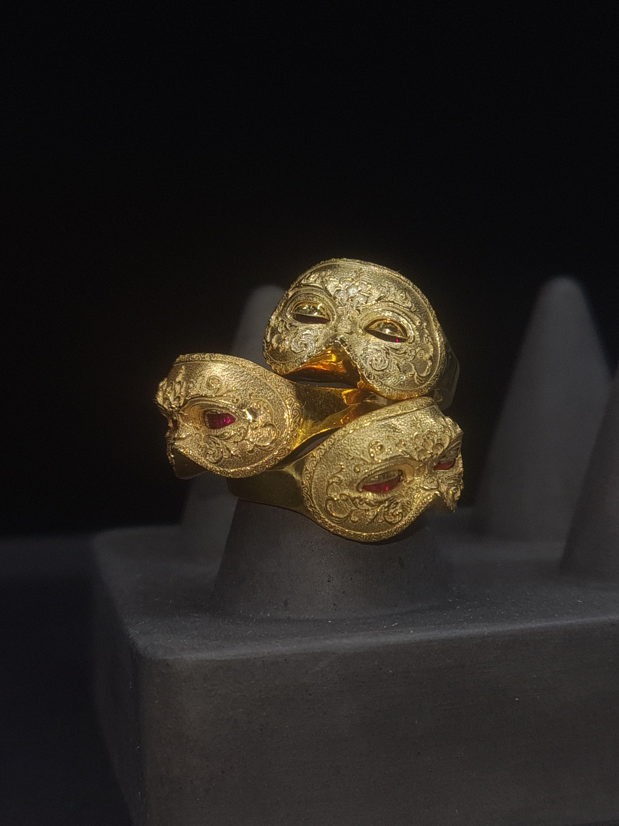Inspired by the mysterious masks of the Venetian Carnival, Los Ocultos is a handcrafted statement ring that merges historical elegance with modern craftsmanship. Meticulously made from high-quality 925 sterling silver and plated in Rhodium, this baroque-style ring features a sculptural face framed by intricate eyelid mechanisms—My most advanced kinetic movement yet. The eyes are set with brilliant 3.25mm crystals, lending a ghostly intensity to its gaze.