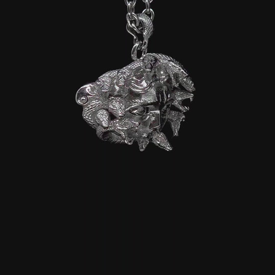 Striking interpretation of myth and movement, the Medusa pendant is meticulously handcrafted from solid 925 sterling silver and finished with a rhodium plating, or oxidised black. The pendant is hung on a 58mm sterling silver chain with a custom clasp. At its centre, Medusa’s face emerges from a crown of intricately sculpted serpents, each detail echoing her allure. Medusa's gaze is brought to life with 3.25mm crystal-set eyes, while the kinetic eyelids - engineered with our most advanced mechanism to date, open and close with the motion of the wearer, revealing a haunting elegance.